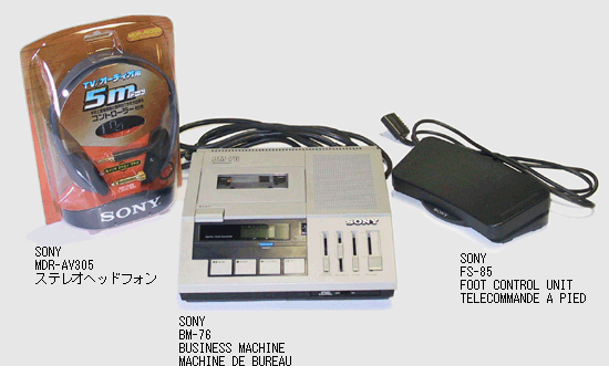 トランスクライバーにはディクテマシン、ソニー製BM-76、ソニー製フットコントロールFS-85、ソニー製ステレオヘッドホンMDR-AV305を貸与致します。