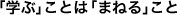 たとえば、職人の世界に代表されるような技術の現場では、昔から必ずグループで仕事をしてきました。そこでは、一人が何か新しい技術をマスターするとみんながまねをしますし、教える際にも、手取り足取り教えるのではなく、「慣れろ」とか「盗め」といいました。つまり、「学ぶ」ことは、徹底して「まねる」ことだったのです。